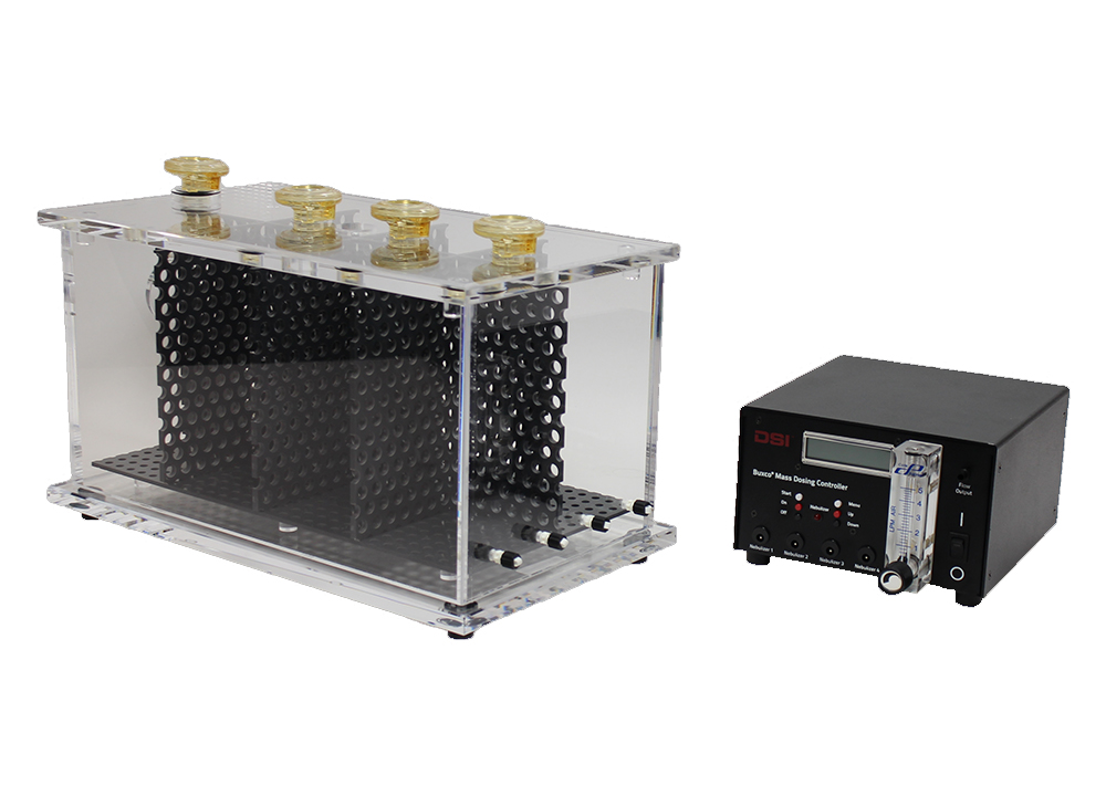 Buxco Mass Dosing Chambers are used to expose multiple subjects to an aerosol or gas when general dosing can be tolerated.